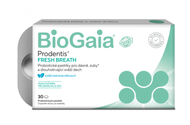BioGaia Prodentis FRESH BREATH jsou pastilky pro řešení nepříjemného zápachu z úst způsobeného nerovnováhou přirozené ústní mikrobioty.